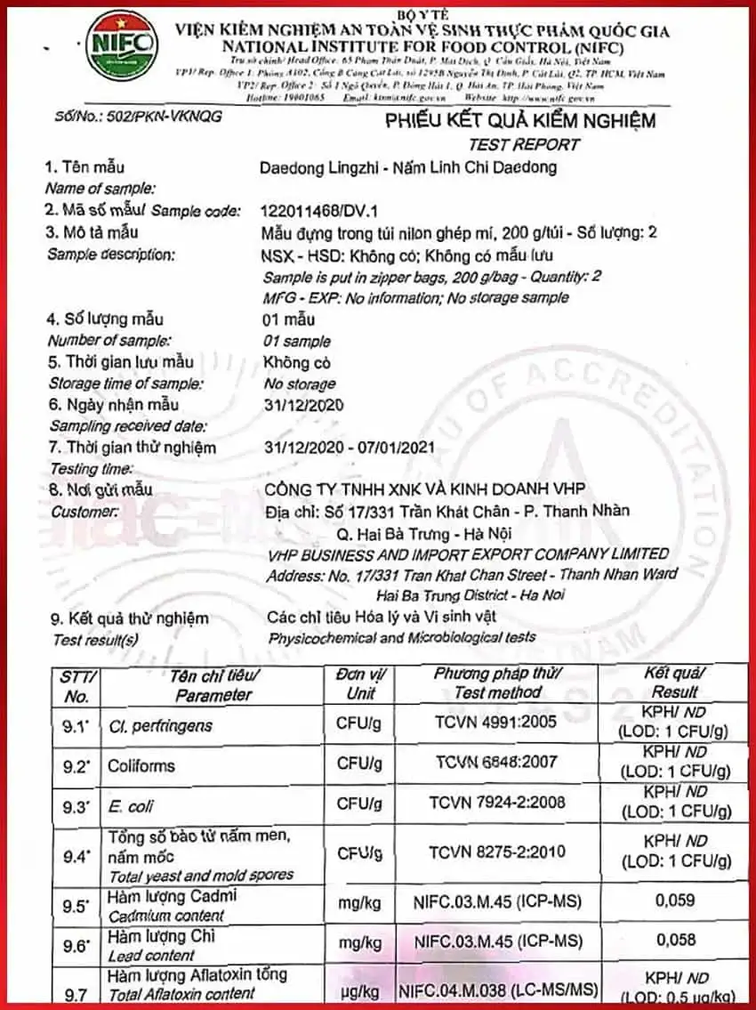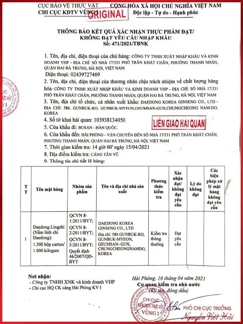 Với sự hỗ trợ của Daedong Korea Ginseng và VHP Ginseng, Nấm Linh Chi Hàn Quốc Daedong Premium là sản phẩm Nấm linh chi đầu tiên được nhập khẩu chính ngạch vào Việt Nam, đáp ứng mọi tiêu chuẩn kiểm dịch và kiểm định chất lượng tại cả Hàn Quốc và Việt Nam.