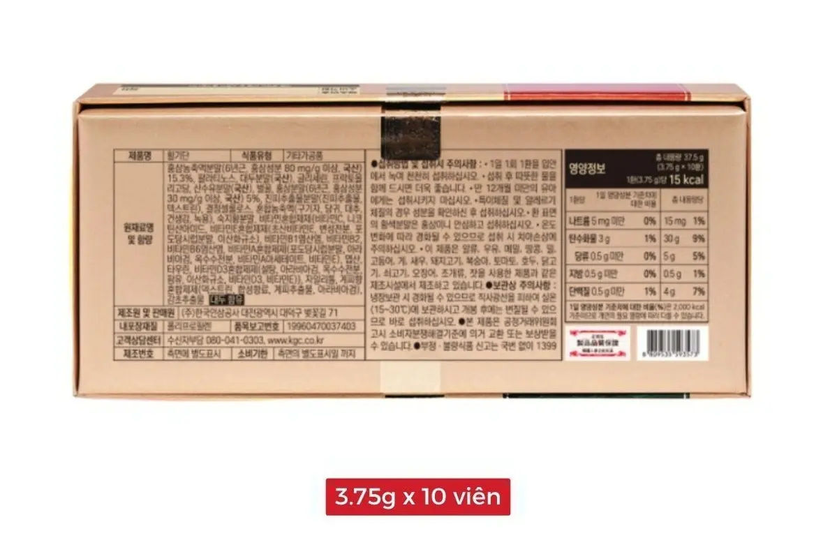 Nhà sản xuất: KOREA GINSENG CORP. (Tập đoàn Nhân Sâm Hàn Quốc) - 100 Pyeongchon - dong, Daedeok - Gu, Taejon, Hàn Quốc.